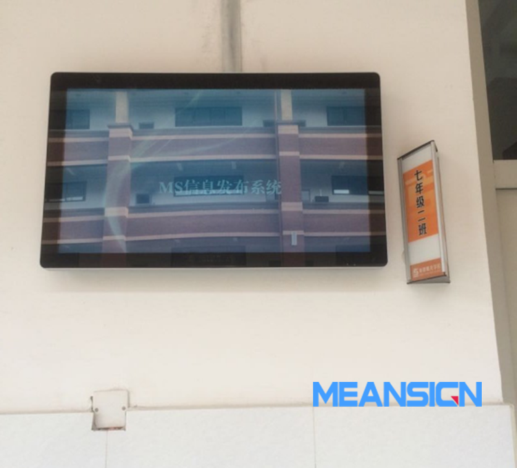 在教學(xué)樓每個(gè)班級(jí)教室門(mén)口,安裝電子班牌顯示屏,展示班級(jí)名稱、班級(jí)課程安排、任課老師、值日表、班級(jí)照片、班級(jí)活動(dòng)、班級(jí)文化、師生風(fēng)采、班級(jí)榮譽(yù)、校園通知、校園新聞、各種評(píng)比活動(dòng),還可以展示一些公共信息如:天氣、日期時(shí)間,支持文字、圖片、音視頻樣式。