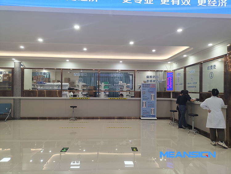 在導診臺,醫院大廳,安裝門診綜合屏,實時顯示所有診室的排隊情況,當前就診患者信息,等待就診排隊列表信息。語音廣播同步呼叫,提醒患者前往就診,同時還應用到檢驗室、藥房取藥窗口、繳費窗口等。